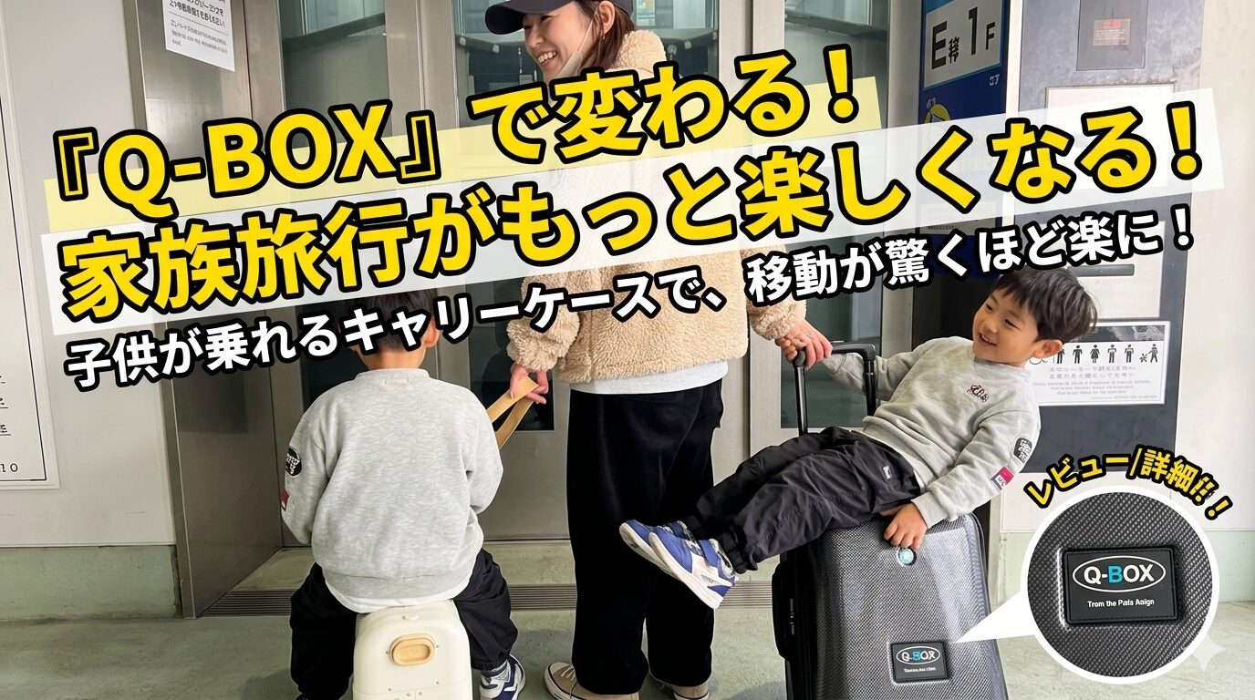 そんなパパ・ママの救世主として今SNSでも話題なのが、**子供が乗れるキャリーケース『Q-BOX』です。今回は、実際に使うとどんな感じなのか、その魅力と注意点をブログにまとめました!